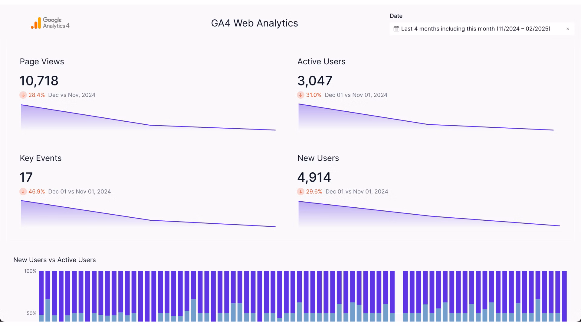 - Where is the website traffic coming from (direct, organic, referral, paid)?