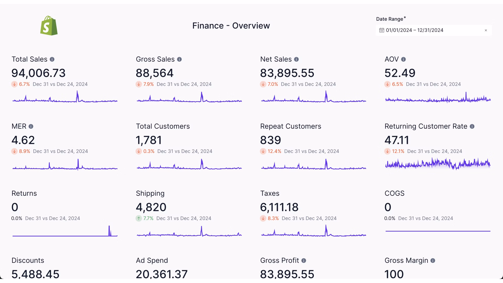 - How do key metrics like sales, ad spend, and customer acquisition fluctuate over time?